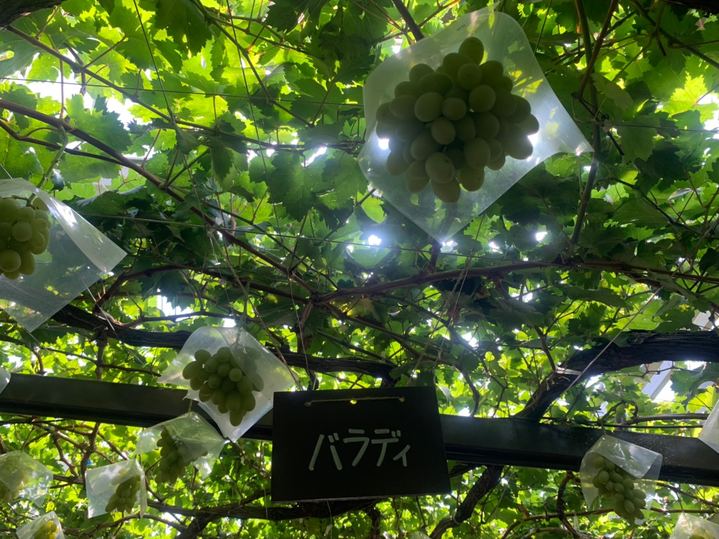 仰頭一望,陽光灑落在葡萄上的美景也十分漂亮。山梨縣是日本出了名的高日照之地,也正因如此,不論是水果或蔬菜都能盡情地進行光合作用和生長、擁有驚人甜度和營養的極高食用價值。
