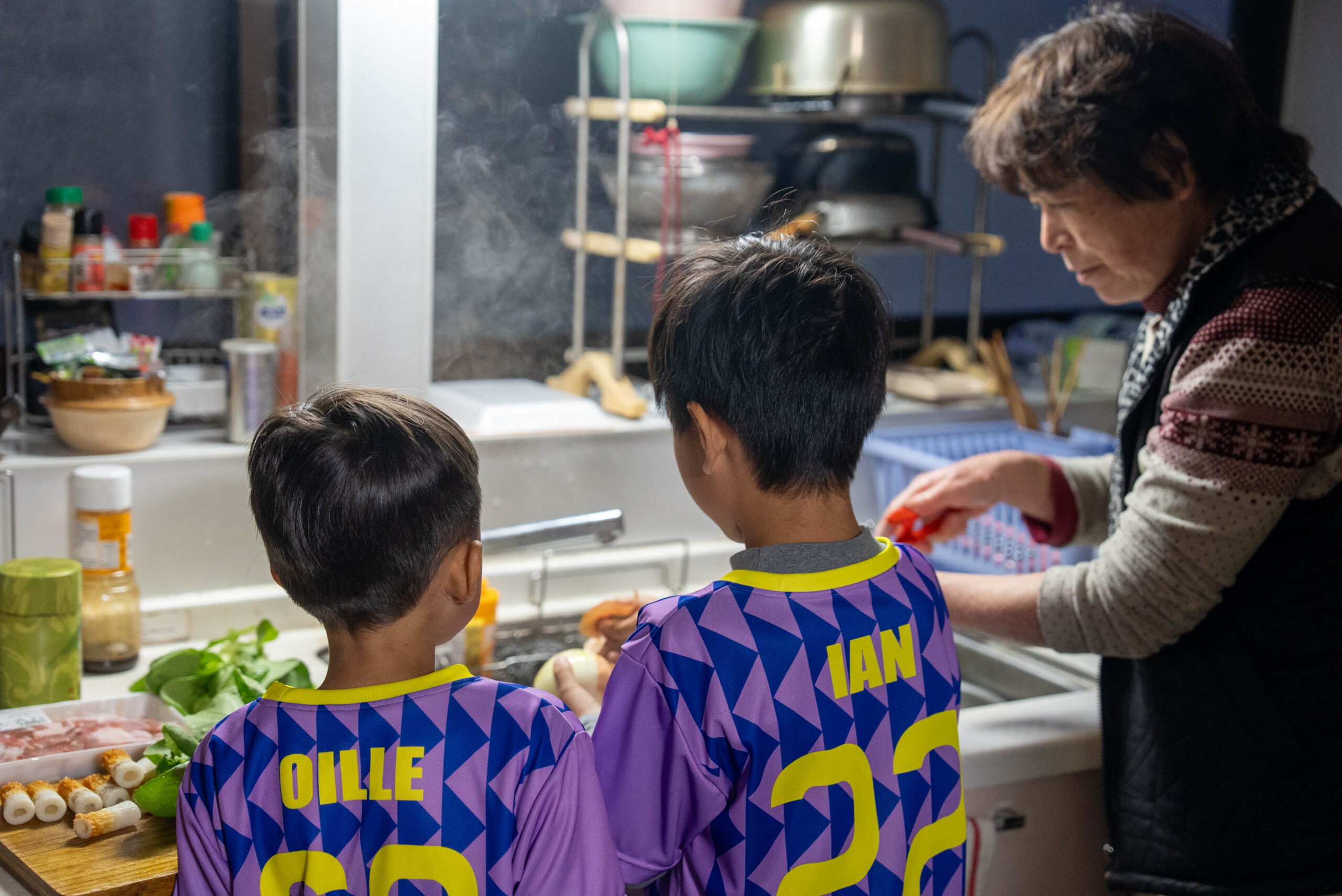 到了農家民宿後,爺爺奶奶們透過翻譯軟體和小選手們溝通,而他們也化身為小小幫手,親身體驗拔菜、生火等日常農家生活。原本還掛著淚水的臉龐,很快就被笑容取代,大家投入其中,與同住夥伴及爺爺奶奶們自然地交流互動。